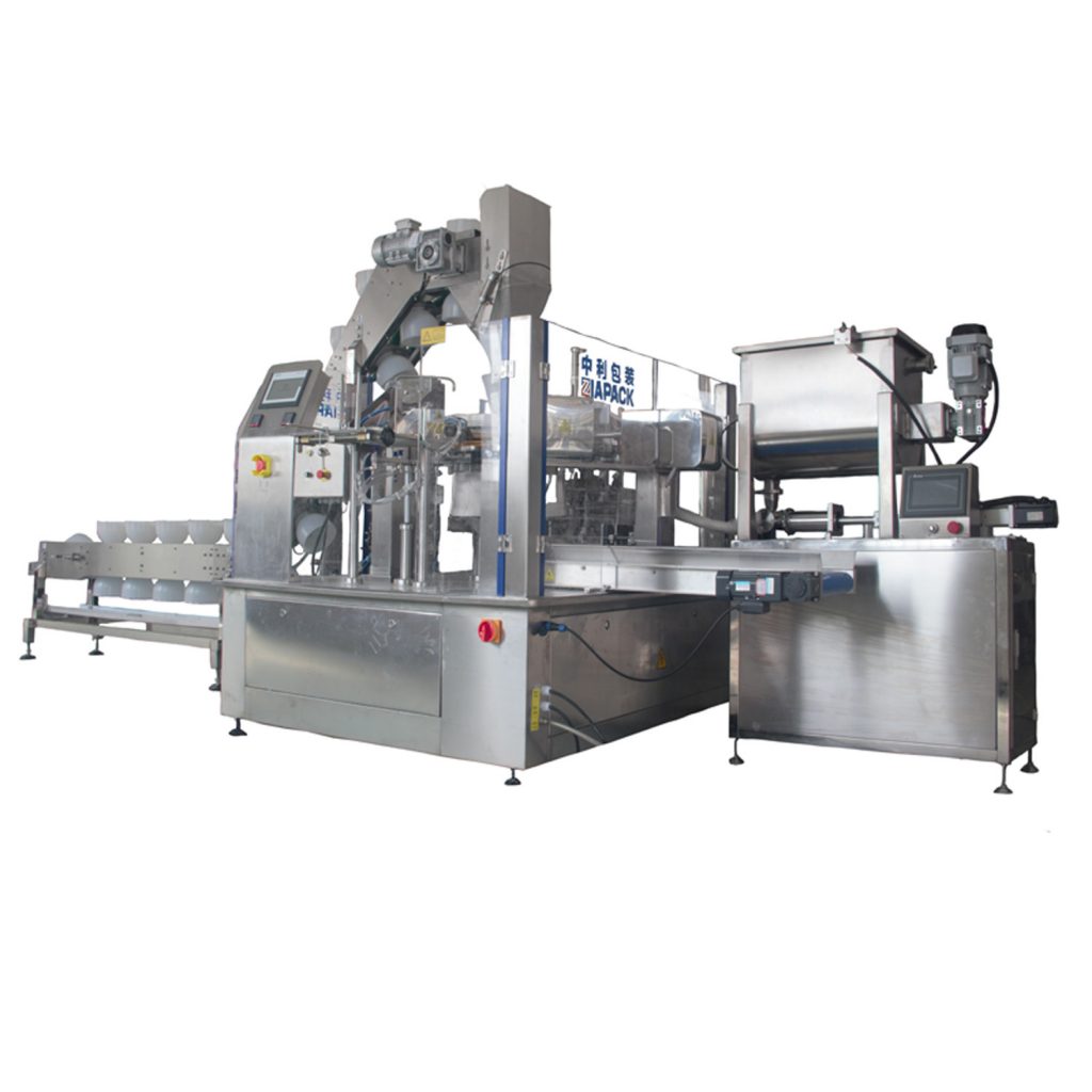 ਇਹ ਮਸ਼ੀਨ ਠੋਸ ਉਤਪਾਦ ਜਿਵੇਂ ਕਿ ਪਕਾਉਣ ਤੋਂ ਪਹਿਲਾਂ ਭੋਜਨ, ਸੂਪ ਦੇ ਨਾਲ ਅਚਾਰ, ਅਚਾਰ ਵਾਲੇ ਜੈਤੂਨ, ਅਚਾਰ ਵਾਲੇ ਖੀਰੇ ਆਦਿ ਨਾਲ ਮਿਲਾਏ ਗਏ ਤਰਲ ਉਤਪਾਦ ਨੂੰ ਭਰਨ ਲਈ ਡਿਜ਼ਾਈਨ ਕੀਤੀ ਗਈ ਹੈ। ਪਹਿਲਾਂ ਤੋਂ ਬਣੇ ਬੈਗ ਵਿੱਚ ਠੋਸ ਉਤਪਾਦ ਨੂੰ ਖੁਆਉਣ ਲਈ ਕਟੋਰੇ ਐਲੀਵੇਟਰ ਅਤੇ ਫਿਰ ਪਿਸਟਨ ਪੰਪ ਫਿਲਿੰਗ ਦੇ ਨਾਲ। ਚਟਣੀ