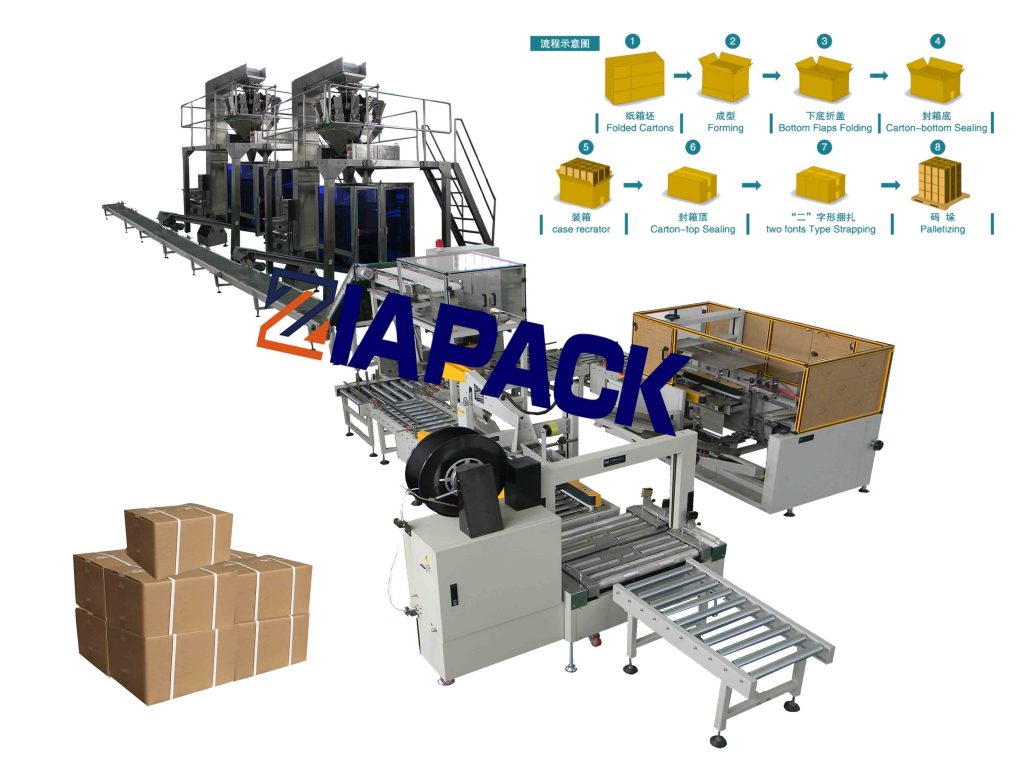 - ਇਹ ਅੰਤ ਵਿੱਚ-ਲਾਈਨ ਪੈਕੇਜ਼ਿੰਗ ਉਤਪਾਦਨ ਲਾਈਨ ਬਣਾਉਣ ਲਈ ਫਿਲਮ ਪੈਕਿੰਗ ਮਸ਼ੀਨ, ਕੇਸ ਪੈਕਰ ਅਤੇ ਰੈਪਿੰਗ ਮਸ਼ੀਨ ਨਾਲ ਕੰਮ ਕਰ ਸਕਦਾ ਹੈ.