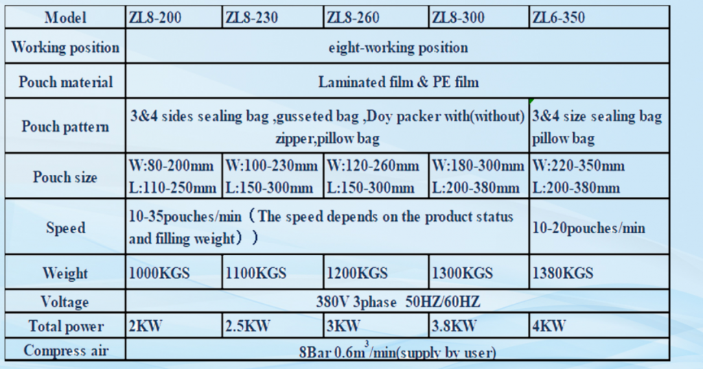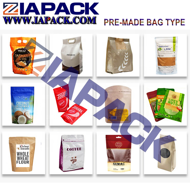 - ਆਟੋਮੈਟਿਕ ਔਜਰ ਪਾਊਡਰ ਫਿਲਰ, ਬਲਕ ਸਕ੍ਰੂ ਫੀਡਰ ਅਤੇ ਉਤਪਾਦ ਬਲਕ ਹੌਪਰ ਦੇ ਨਾਲ ਮਿਲ ਕੇ ਪੂਰੀ ਆਟੋਮੈਟਿਕ ਰੁਕ-ਰੁਕ ਕੇ ਰੋਟਰੀ ਪ੍ਰੀਮੇਡ ਬੈਗ ਡਿਸਪੈਂਸਿੰਗ, ਓਪਨਿੰਗ ਅਤੇ ਬੰਦ ਕਰਨ ਵਾਲੀ ਮਸ਼ੀਨ