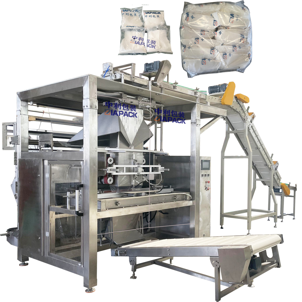 ਇਹ ਮਸ਼ੀਨ ਛੋਟੇ ਬੈਗ ਨੂੰ ਵੱਡੇ ਬੈਗ ਵਿੱਚ ਪੈਕ ਕਰਨ ਲਈ ਢੁਕਵੀਂ ਹੈ .ਮਸ਼ੀਨ ਬੈਗ ਨੂੰ ਆਟੋਮੈਟਿਕ ਬਣਾ ਸਕਦੀ ਹੈ ਅਤੇ ਛੋਟੇ ਬੈਗ ਵਿੱਚ ਭਰ ਸਕਦੀ ਹੈ ਅਤੇ ਫਿਰ ਵੱਡੇ ਬੈਗ ਨੂੰ ਸੀਲ ਕਰ ਸਕਦੀ ਹੈ . ਹੇਠ ਲਿਖੀਆਂ ਇਕਾਈਆਂ ਸਮੇਤ ਇਹ ਮਸ਼ੀਨ: